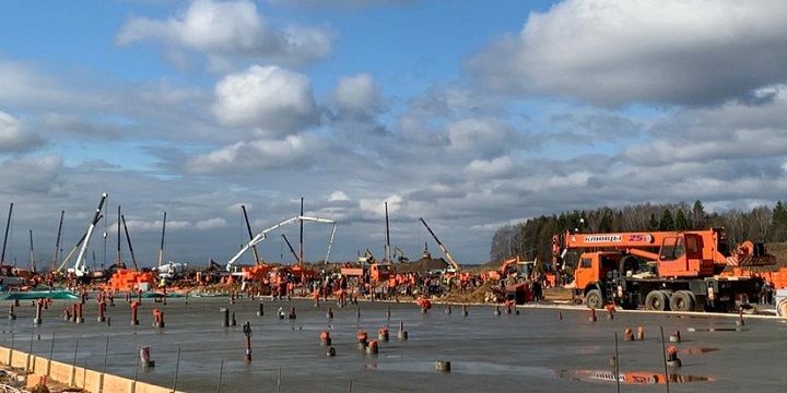 "11 марта приехали со строителями на площадку, здесь было чистое поле, 12 марта приступили к строительству, и на сегодняшний день объемы строительства выполнены на 40%. Стройка развернута полным ходом, идет монтаж корпусов, инженерных коммуникаций, дорог, поставка медицинского лечебного оборудования", — сказал Собянин.